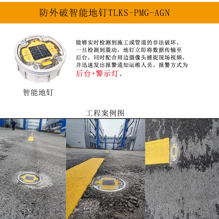在現代都市中,地下基礎設施如同城市的隱形血脈,支撐著城市的正常運轉。然而,施工破壞、非法挖掘等潛在威脅時刻威脅著這些“生命線”的安全。傳統的監測手段往往滯后,難以提供及時有效的預警。為此,我們創新推出了TLKS-PMG-AGN電纜防外破地釘,這款專為城市地下基礎設施設計的智能監測裝置,以先進的預警機制和高精度監測技術,為城市地下安全筑起了一道堅實的防線。
