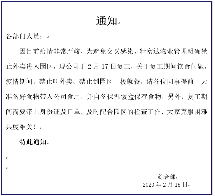 并且在面對新型冠狀病毒肺炎疫情防控期,為確保復產復工后全體員工及其家人的健康安全,我司首先進行了辦公區域消殺工作,其次配合政府各單位做好“社區小區疫情防控“五個100%”、封閉式管理小區“七個有”工作標準、社區小區疫情防控“十個一律”等宣傳防護工作,確實落實疫情防控。