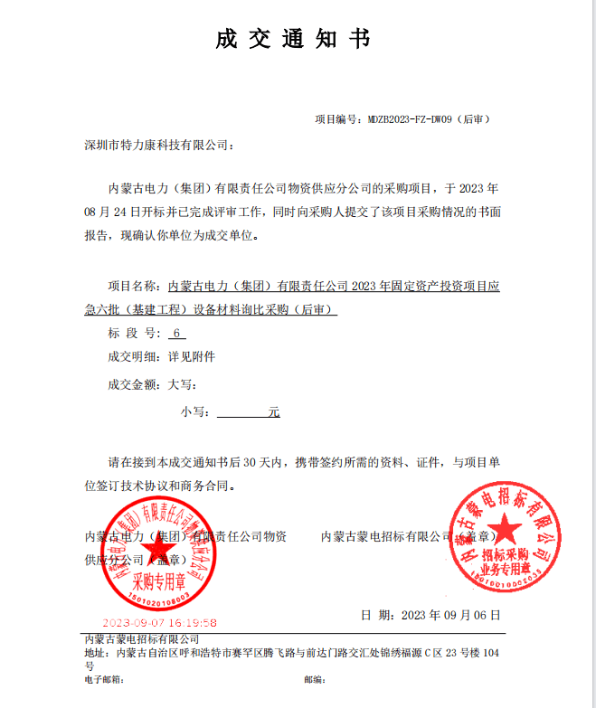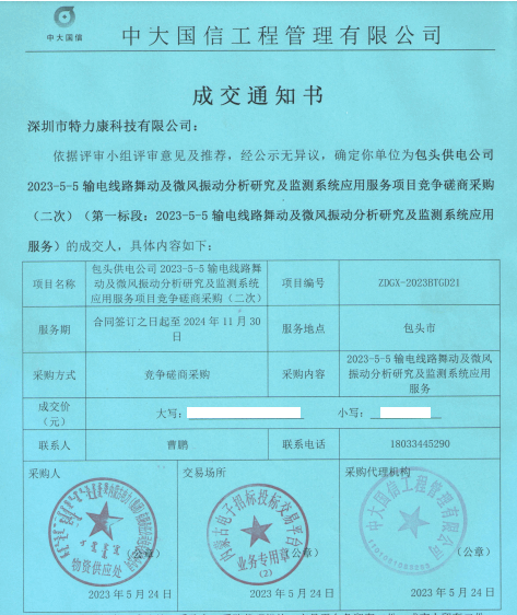 特力康中標國網黑龍江送變電工程公司的2024年度第18次物資類競爭性談判采購項目——慶陽驅鳥器物資框 特力康中標國網甘肅省電力公司省管產業單位2024年第五次物資競爭性談判授權采購項目 中標喜訊:深圳市特力康科技有限公司成功入圍許繼集團綜合能源公司輸電線路視頻在線監測裝置模塊集采項目 中標喜訊:特力康成功中標國網重慶市電力公司渝中一片區項目 特力康成功中標國網天津市電力公司2024年第二次?物?資招標項目 特力康中標國網安徽省電力有限公司蕪湖供電公司2024年3月非物質采購項目 貴州電力裝特力康電網架空線路覆冰監測系統,精準防冰保電網過冬? 百套落地山西電網!特力康輕量化輸電架空線路監拍裝置,筑牢輸電安全網 破解采空區隱患:山西電力裝特力康通用型監測裝置,守鐵塔穩運行 四川電力用特力康架空輸電線路山火監測裝置,筑牢林區輸電 “防火墻”? 遼寧電力啟用特力康多視角監拍裝置,全維度守護輸電安全? 破解黃土高原沉降難題:山西電力用特力康北斗裝置守桿塔安全? 山東電力啟用特力康動態版智能激光驅鳥器,動態防控守護變電站安全? 湖南超高壓電力啟用特力康球機 AI 監測裝置,智能守護輸電通道安全? 廣西電力啟用特力康高壓電纜護層環流監控設備,筑牢電纜安全防線? 寧夏配電線路安裝了我司防外破電子化智能警示牌