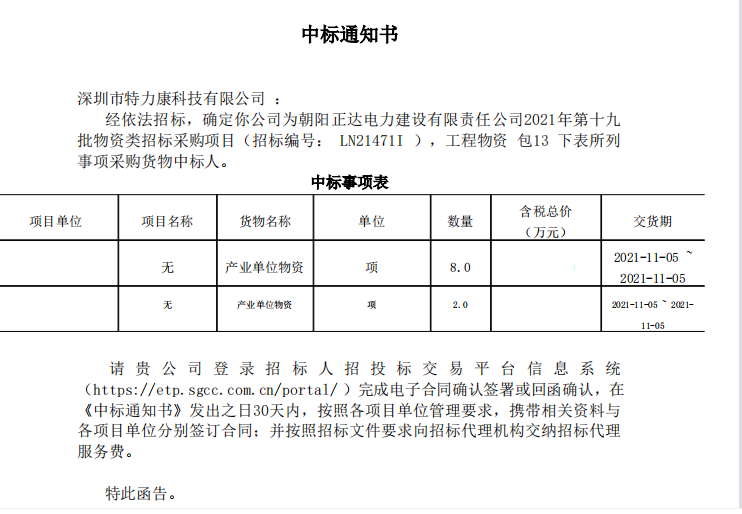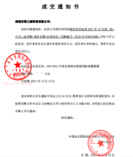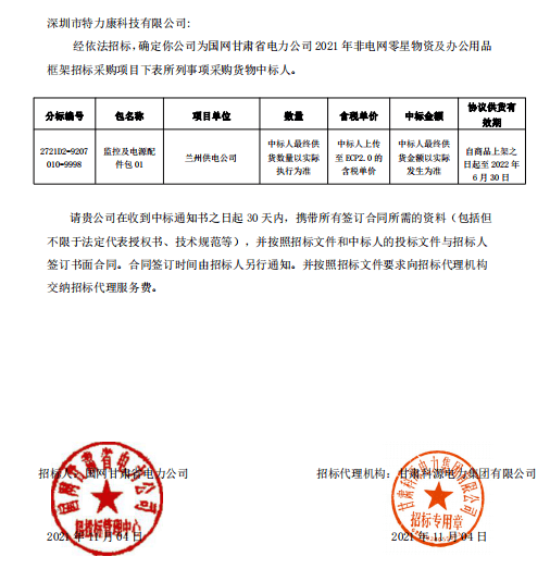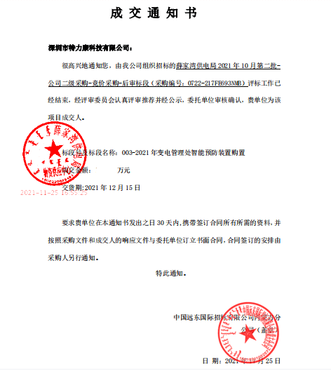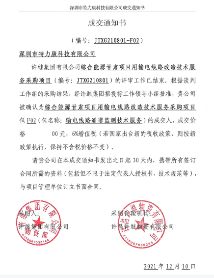 特力康中標國網黑龍江送變電工程公司的2024年度第18次物資類競爭性談判采購項目——慶陽驅鳥器物資框 特力康中標國網甘肅省電力公司省管產業單位2024年第五次物資競爭性談判授權采購項目 中標喜訊:深圳市特力康科技有限公司成功入圍許繼集團綜合能源公司輸電線路視頻在線監測裝置模塊集采項目 中標喜訊:特力康成功中標國網重慶市電力公司渝中一片區項目 特力康成功中標國網天津市電力公司2024年第二次?物?資招標項目 特力康中標國網安徽省電力有限公司蕪湖供電公司2024年3月非物質采購項目 貴州電力裝特力康電網架空線路覆冰監測系統,精準防冰保電網過冬? 百套落地山西電網!特力康輕量化輸電架空線路監拍裝置,筑牢輸電安全網 破解采空區隱患:山西電力裝特力康通用型監測裝置,守鐵塔穩運行 四川電力用特力康架空輸電線路山火監測裝置,筑牢林區輸電 “防火墻”? 遼寧電力啟用特力康多視角監拍裝置,全維度守護輸電安全? 破解黃土高原沉降難題:山西電力用特力康北斗裝置守桿塔安全? 山東電力啟用特力康動態版智能激光驅鳥器,動態防控守護變電站安全? 湖南超高壓電力啟用特力康球機 AI 監測裝置,智能守護輸電通道安全? 廣西電力啟用特力康高壓電纜護層環流監控設備,筑牢電纜安全防線? 寧夏配電線路安裝了我司防外破電子化智能警示牌