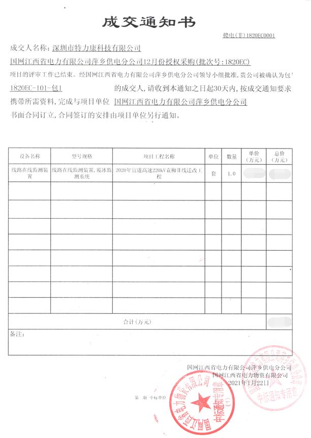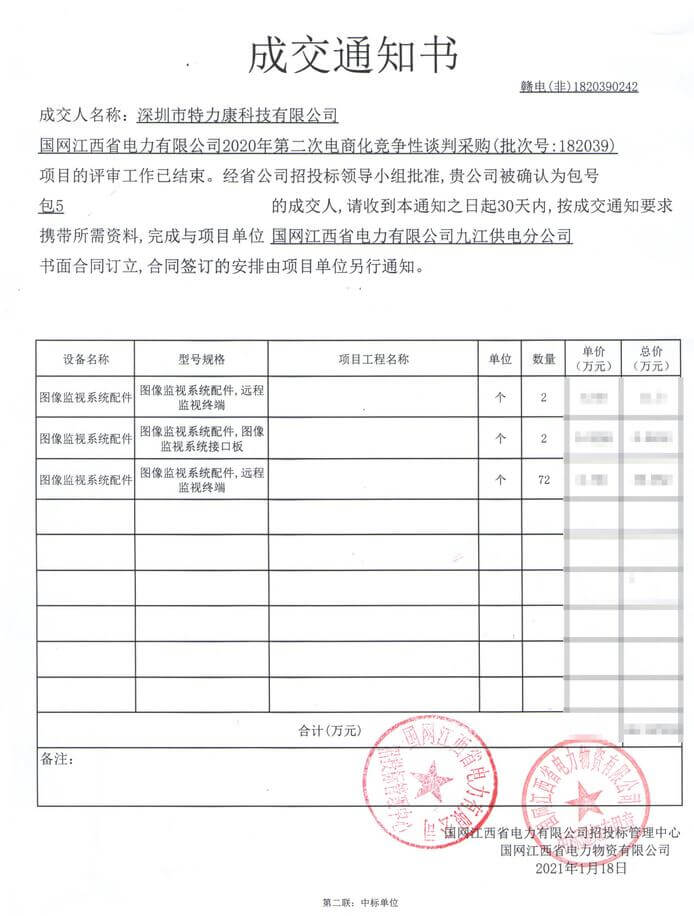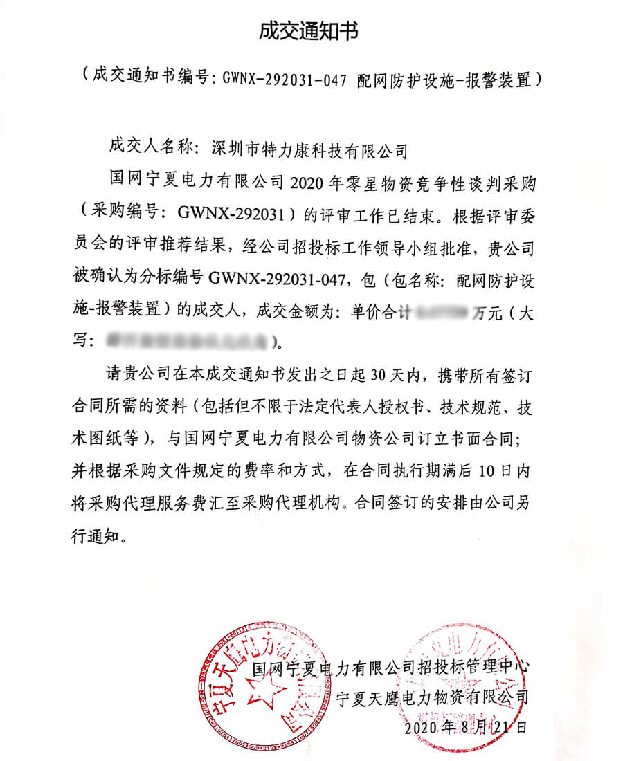 特力康中標國網黑龍江送變電工程公司的2024年度第18次物資類競爭性談判采購項目——慶陽驅鳥器物資框 特力康中標國網甘肅省電力公司省管產業單位2024年第五次物資競爭性談判授權采購項目 中標喜訊:深圳市特力康科技有限公司成功入圍許繼集團綜合能源公司輸電線路視頻在線監測裝置模塊集采項目 中標喜訊:特力康成功中標國網重慶市電力公司渝中一片區項目 特力康成功中標國網天津市電力公司2024年第二次?物?資招標項目 特力康中標國網安徽省電力有限公司蕪湖供電公司2024年3月非物質采購項目 貴州電力裝特力康電網架空線路覆冰監測系統,精準防冰保電網過冬? 百套落地山西電網!特力康輕量化輸電架空線路監拍裝置,筑牢輸電安全網 破解采空區隱患:山西電力裝特力康通用型監測裝置,守鐵塔穩運行 四川電力用特力康架空輸電線路山火監測裝置,筑牢林區輸電 “防火墻”? 遼寧電力啟用特力康多視角監拍裝置,全維度守護輸電安全? 破解黃土高原沉降難題:山西電力用特力康北斗裝置守桿塔安全? 山東電力啟用特力康動態版智能激光驅鳥器,動態防控守護變電站安全? 湖南超高壓電力啟用特力康球機 AI 監測裝置,智能守護輸電通道安全? 廣西電力啟用特力康高壓電纜護層環流監控設備,筑牢電纜安全防線? 寧夏配電線路安裝了我司防外破電子化智能警示牌
