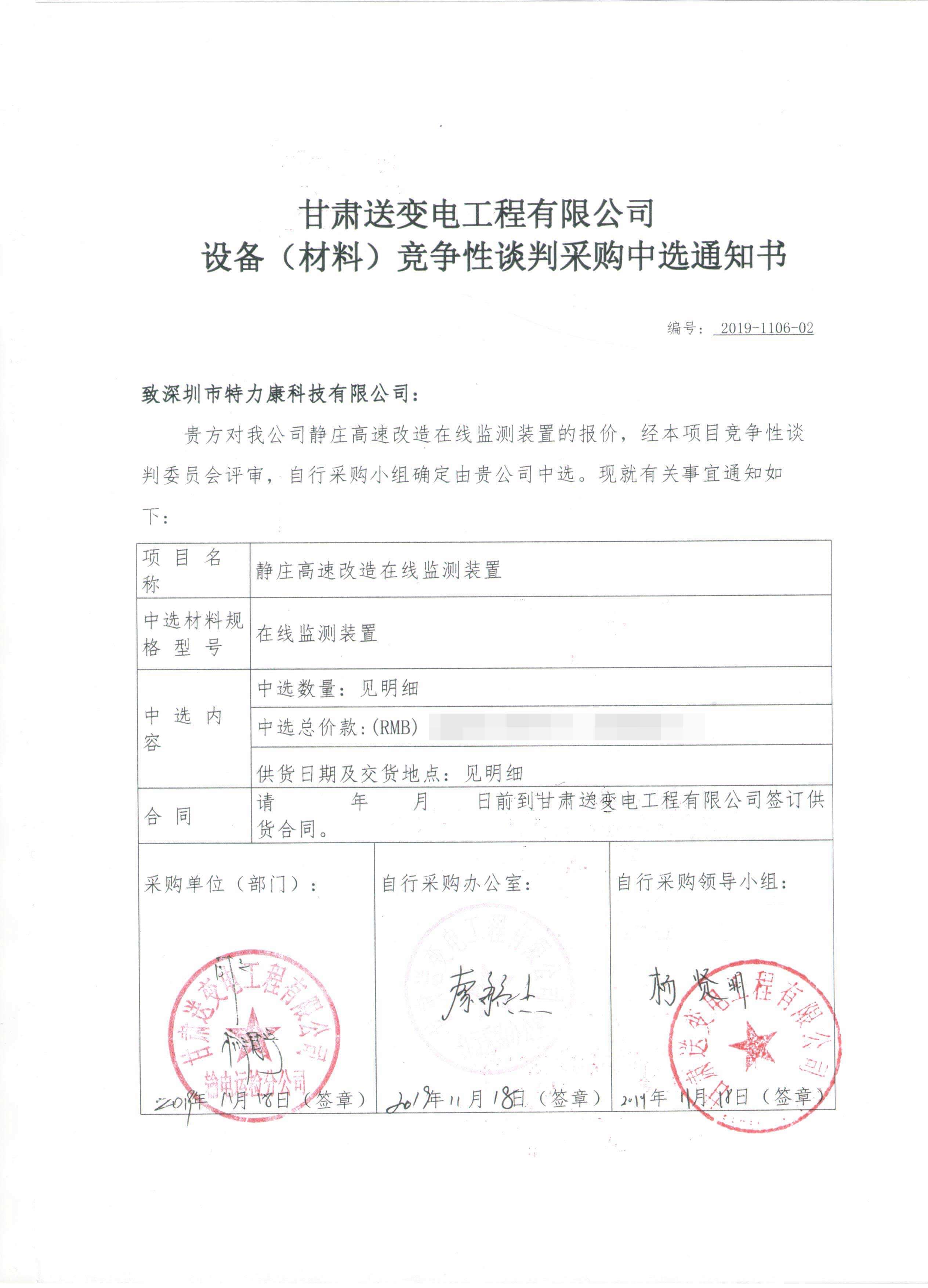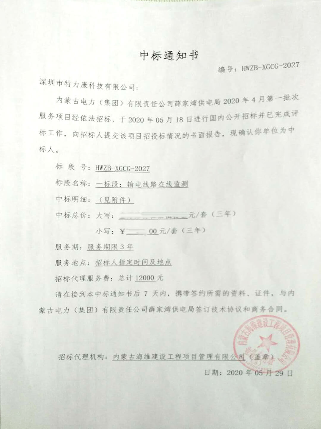 特力康中標國網(wǎng)黑龍江送變電工程公司的2024年度第18次物資類競爭性談判采購項目——慶陽驅(qū)鳥器物資框 特力康中標國網(wǎng)甘肅省電力公司省管產(chǎn)業(yè)單位2024年第五次物資競爭性談判授權(quán)采購項目 中標喜訊:深圳市特力康科技有限公司成功入圍許繼集團綜合能源公司輸電線路視頻在線監(jiān)測裝置模塊集采項目 中標喜訊:特力康成功中標國網(wǎng)重慶市電力公司渝中一片區(qū)項目 特力康成功中標國網(wǎng)天津市電力公司2024年第二次?物?資招標項目 特力康中標國網(wǎng)安徽省電力有限公司蕪湖供電公司2024年3月非物質(zhì)采購項目 貴州電力裝特力康電網(wǎng)架空線路覆冰監(jiān)測系統(tǒng),精準防冰保電網(wǎng)過冬? 百套落地山西電網(wǎng)!特力康輕量化輸電架空線路監(jiān)拍裝置,筑牢輸電安全網(wǎng) 破解采空區(qū)隱患:山西電力裝特力康通用型監(jiān)測裝置,守鐵塔穩(wěn)運行 四川電力用特力康架空輸電線路山火監(jiān)測裝置,筑牢林區(qū)輸電 “防火墻”? 遼寧電力啟用特力康多視角監(jiān)拍裝置,全維度守護輸電安全? 破解黃土高原沉降難題:山西電力用特力康北斗裝置守桿塔安全? 山東電力啟用特力康動態(tài)版智能激光驅(qū)鳥器,動態(tài)防控守護變電站安全? 湖南超高壓電力啟用特力康球機 AI 監(jiān)測裝置,智能守護輸電通道安全? 廣西電力啟用特力康高壓電纜護層環(huán)流監(jiān)控設(shè)備,筑牢電纜安全防線? 寧夏配電線路安裝了我司防外破電子化智能警示牌