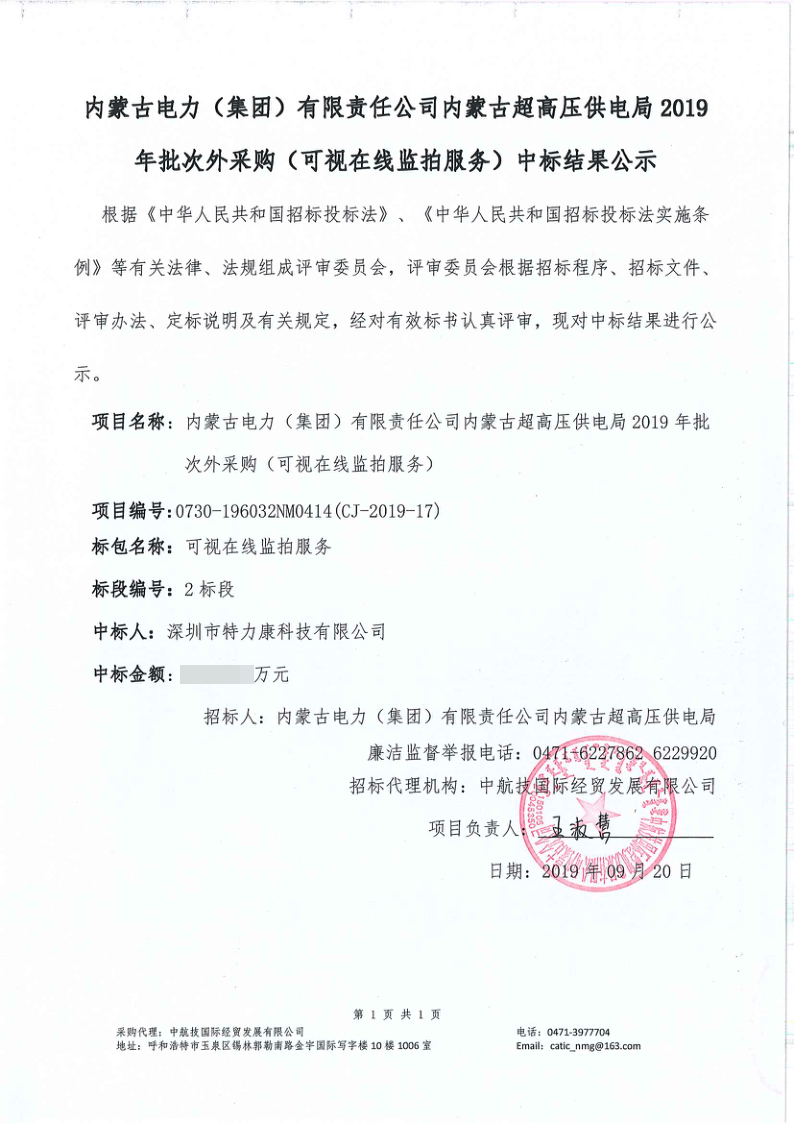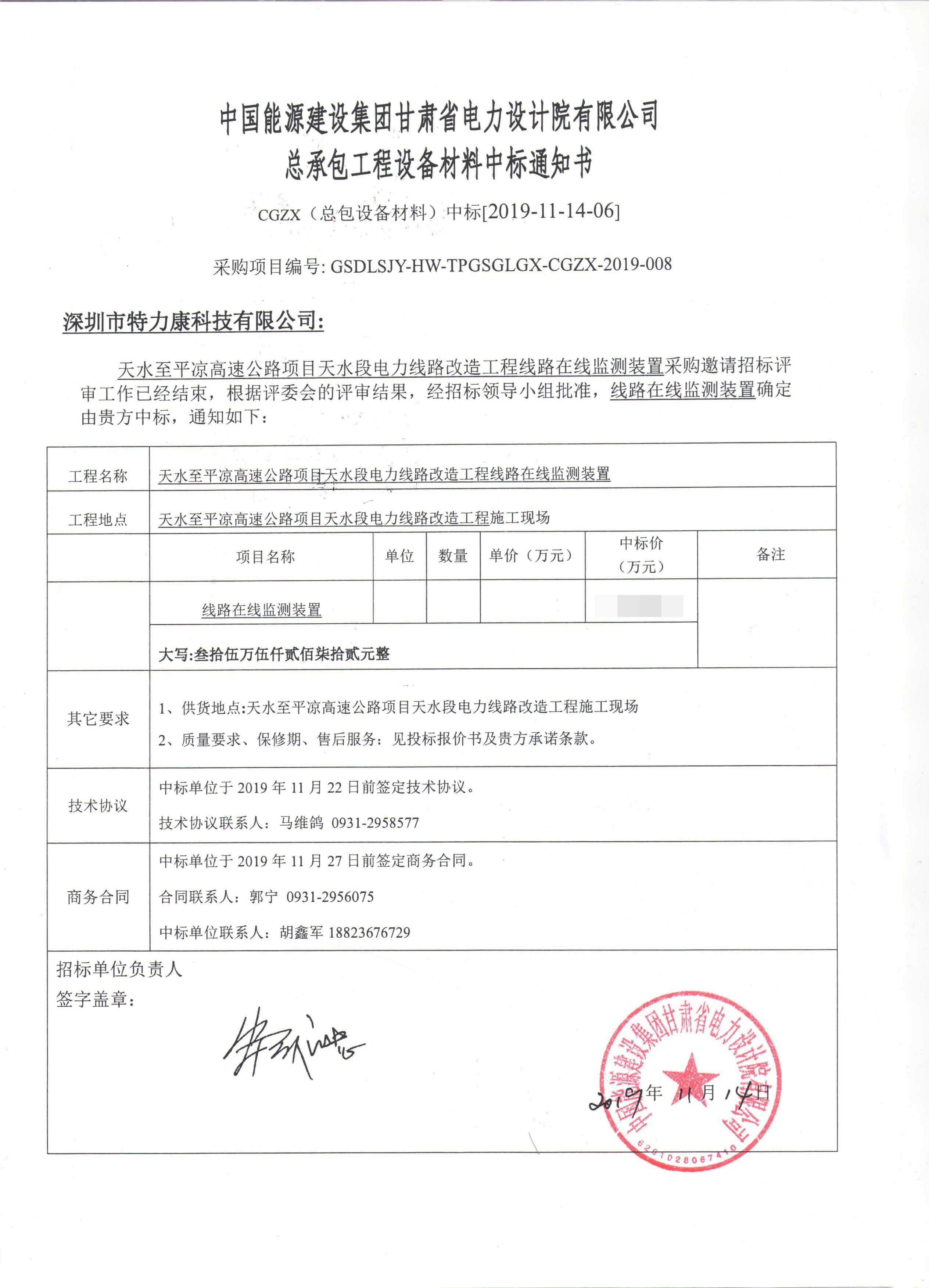 特力康中標(biāo)國網(wǎng)黑龍江送變電工程公司的2024年度第18次物資類競爭性談判采購項(xiàng)目——慶陽驅(qū)鳥器物資框 特力康中標(biāo)國網(wǎng)甘肅省電力公司省管產(chǎn)業(yè)單位2024年第五次物資競爭性談判授權(quán)采購項(xiàng)目 中標(biāo)喜訊:深圳市特力康科技有限公司成功入圍許繼集團(tuán)綜合能源公司輸電線路視頻在線監(jiān)測裝置模塊集采項(xiàng)目 中標(biāo)喜訊:特力康成功中標(biāo)國網(wǎng)重慶市電力公司渝中一片區(qū)項(xiàng)目 特力康成功中標(biāo)國網(wǎng)天津市電力公司2024年第二次?物?資招標(biāo)項(xiàng)目 特力康中標(biāo)國網(wǎng)安徽省電力有限公司蕪湖供電公司2024年3月非物質(zhì)采購項(xiàng)目 貴州電力裝特力康電網(wǎng)架空線路覆冰監(jiān)測系統(tǒng),精準(zhǔn)防冰保電網(wǎng)過冬? 百套落地山西電網(wǎng)!特力康輕量化輸電架空線路監(jiān)拍裝置,筑牢輸電安全網(wǎng) 破解采空區(qū)隱患:山西電力裝特力康通用型監(jiān)測裝置,守鐵塔穩(wěn)運(yùn)行 四川電力用特力康架空輸電線路山火監(jiān)測裝置,筑牢林區(qū)輸電 “防火墻”? 遼寧電力啟用特力康多視角監(jiān)拍裝置,全維度守護(hù)輸電安全? 破解黃土高原沉降難題:山西電力用特力康北斗裝置守桿塔安全? 山東電力啟用特力康動態(tài)版智能激光驅(qū)鳥器,動態(tài)防控守護(hù)變電站安全? 湖南超高壓電力啟用特力康球機(jī) AI 監(jiān)測裝置,智能守護(hù)輸電通道安全? 廣西電力啟用特力康高壓電纜護(hù)層環(huán)流監(jiān)控設(shè)備,筑牢電纜安全防線? 寧夏配電線路安裝了我司防外破電子化智能警示牌