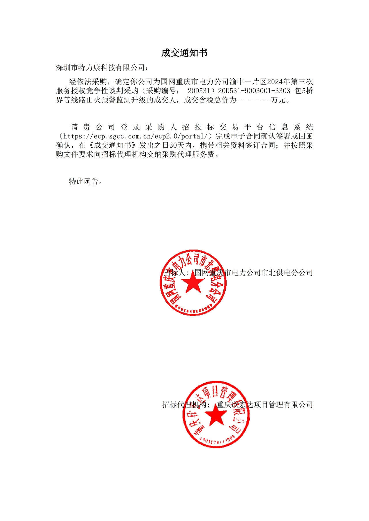 特力康中標國網黑龍江送變電工程公司的2024年度第18次物資類競爭性談判采購項目——慶陽驅鳥器物資框 特力康中標國網甘肅省電力公司省管產業單位2024年第五次物資競爭性談判授權采購項目 中標喜訊:深圳市特力康科技有限公司成功入圍許繼集團綜合能源公司輸電線路視頻在線監測裝置模塊集采項目 中標喜訊:特力康成功中標國網重慶市電力公司渝中一片區項目 特力康成功中標國網天津市電力公司2024年第二次?物?資招標項目 特力康中標國網安徽省電力有限公司蕪湖供電公司2024年3月非物質采購項目 貴州電力裝特力康電網架空線路覆冰監測系統,精準防冰保電網過冬? 百套落地山西電網!特力康輕量化輸電架空線路監拍裝置,筑牢輸電安全網 破解采空區隱患:山西電力裝特力康通用型監測裝置,守鐵塔穩運行 四川電力用特力康架空輸電線路山火監測裝置,筑牢林區輸電 “防火墻”? 遼寧電力啟用特力康多視角監拍裝置,全維度守護輸電安全? 破解黃土高原沉降難題:山西電力用特力康北斗裝置守桿塔安全? 山東電力啟用特力康動態版智能激光驅鳥器,動態防控守護變電站安全? 湖南超高壓電力啟用特力康球機 AI 監測裝置,智能守護輸電通道安全? 廣西電力啟用特力康高壓電纜護層環流監控設備,筑牢電纜安全防線? 寧夏配電線路安裝了我司防外破電子化智能警示牌
