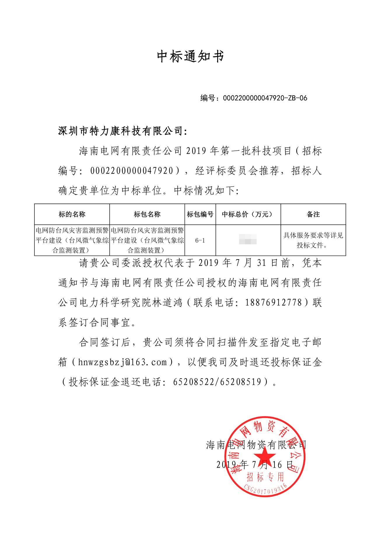 南方電網海南電網有限責任公司2019年第一批科技項目評審工作已結束,經評審委員會推薦,經南網海南電網公司招投標領導小組批準,確定我司為海南2019年第一批科技項目微氣象綜合監測裝置中標單位。